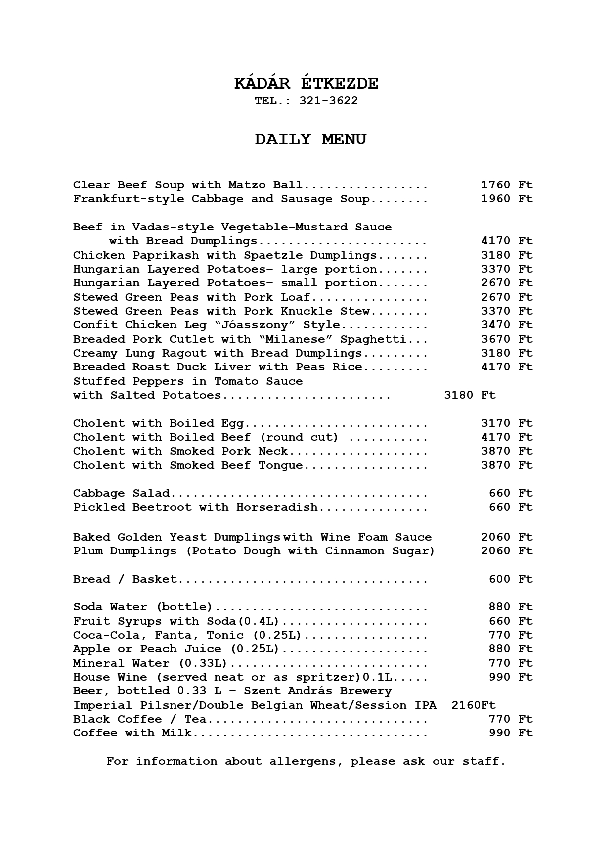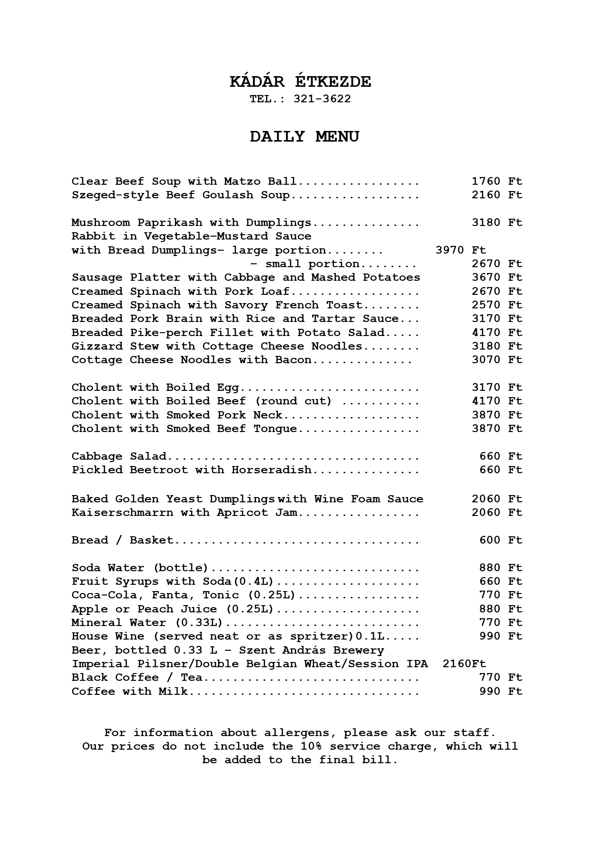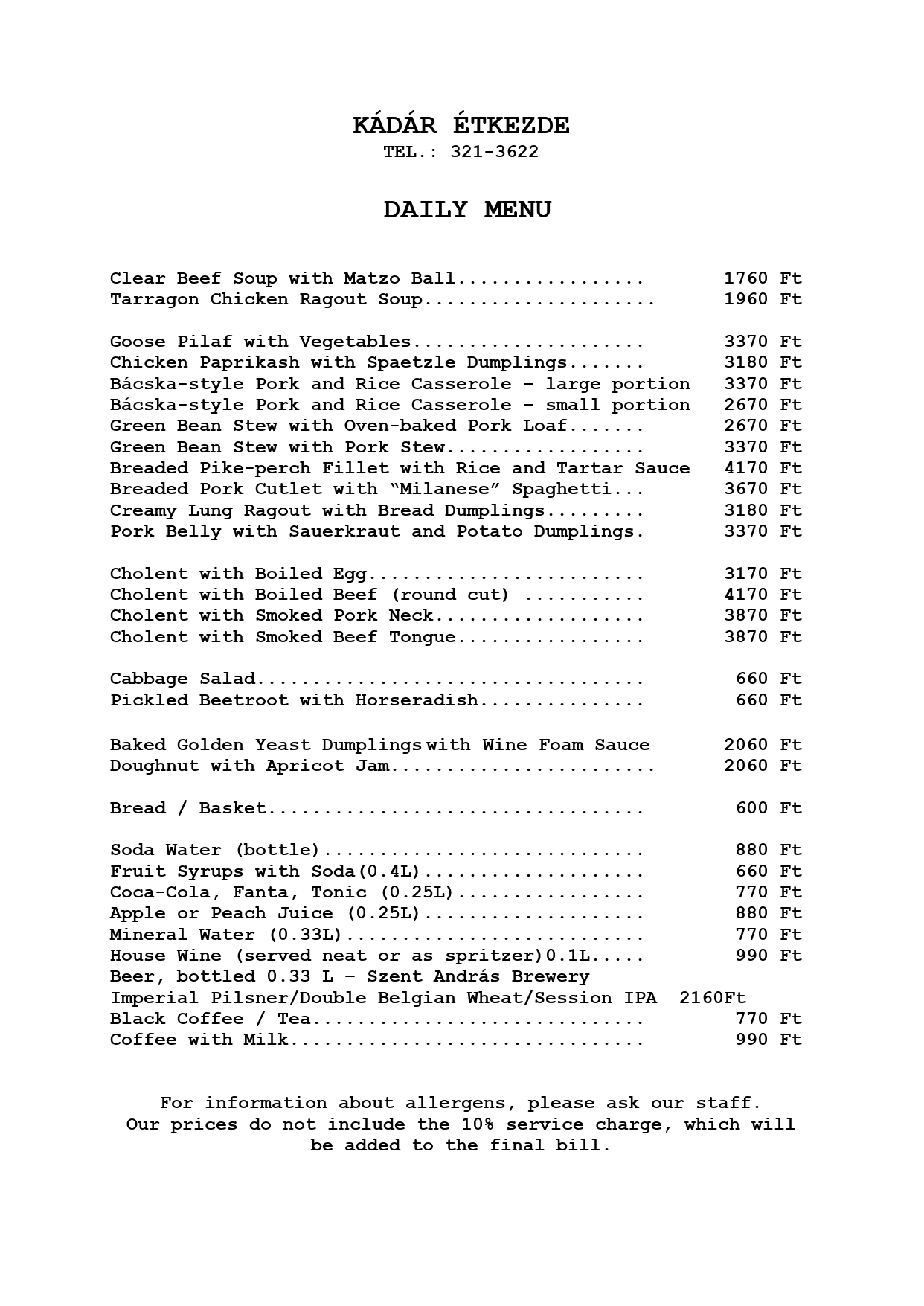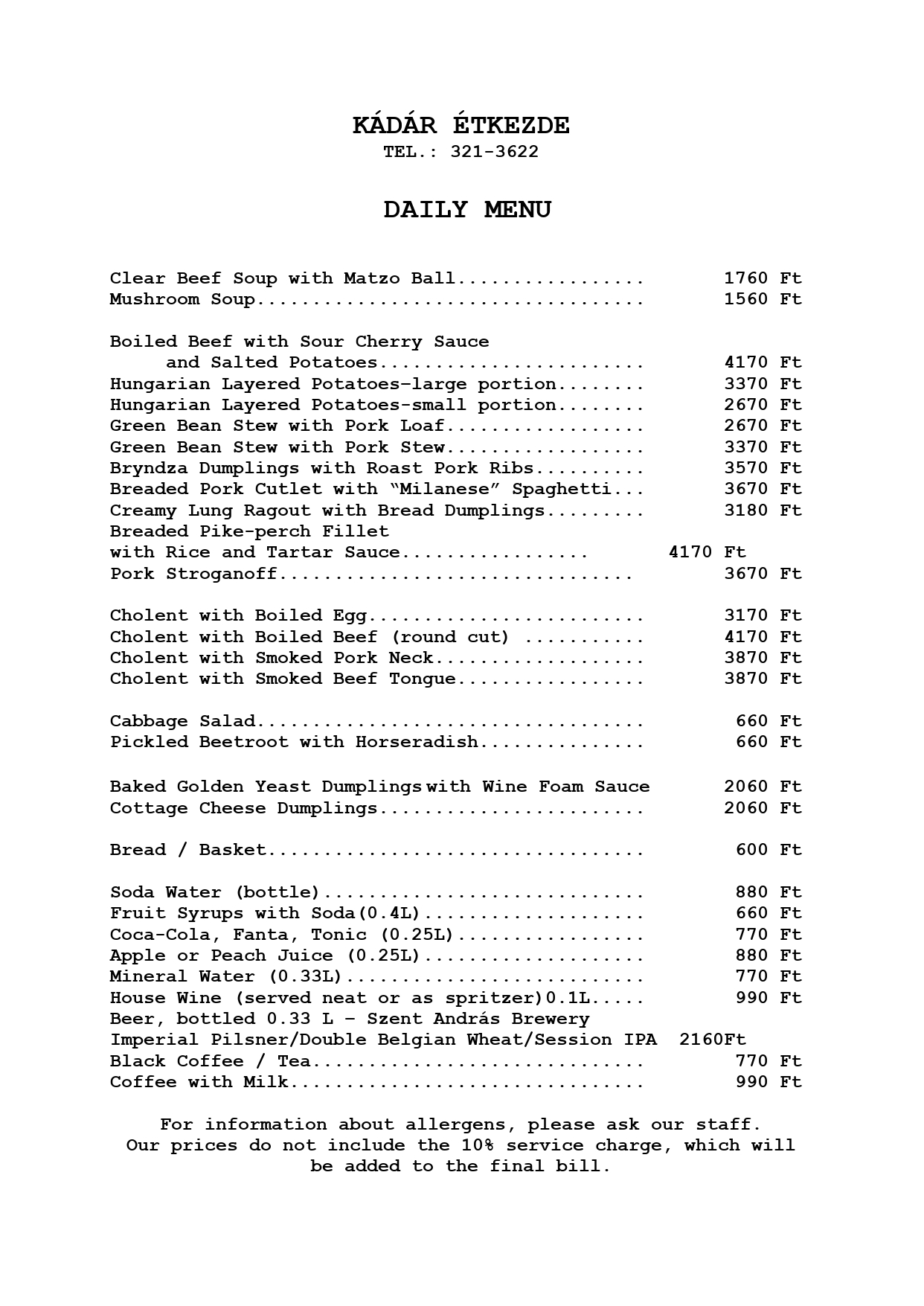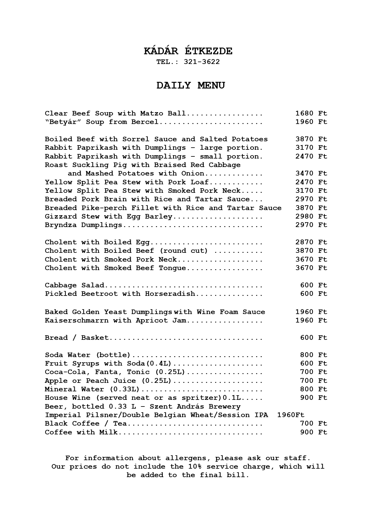 As for the past seventy years, we don’t move the tables – everything remains in its rightful place. If you’re visiting as a group, please note that sitting together at the same table cannot always be guaranteed. At Kádár, reservations are for seats, not for tables, and seating is arranged according to availability. That’s part of the tradition – and part of the charm that’s made Kádár what it is for generations. Reservations are accepted for dining in only – please do not book if you plan to order takeaway. This is how the true Kádár experience begins.